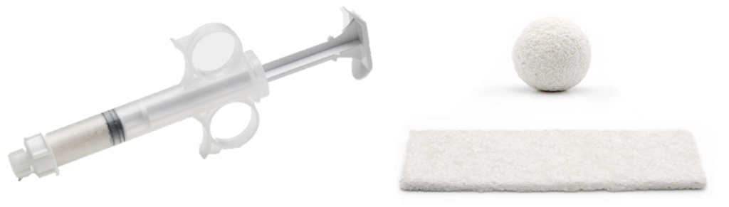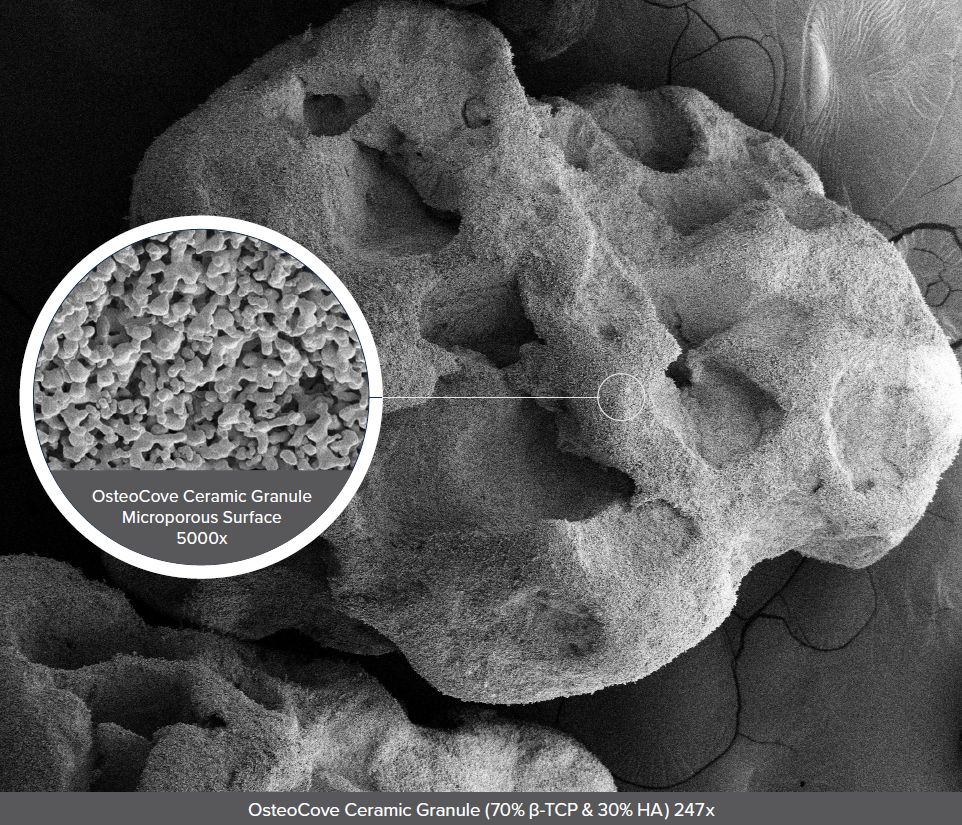 A. Of course. In either case of the putty or strip, the star of OsteoCove is the ceramic granule. We synthesize granules in the lab so they have a biphasic composition—both β-TCP and HA in each granule. Think of how alcohol in water makes a single solution.